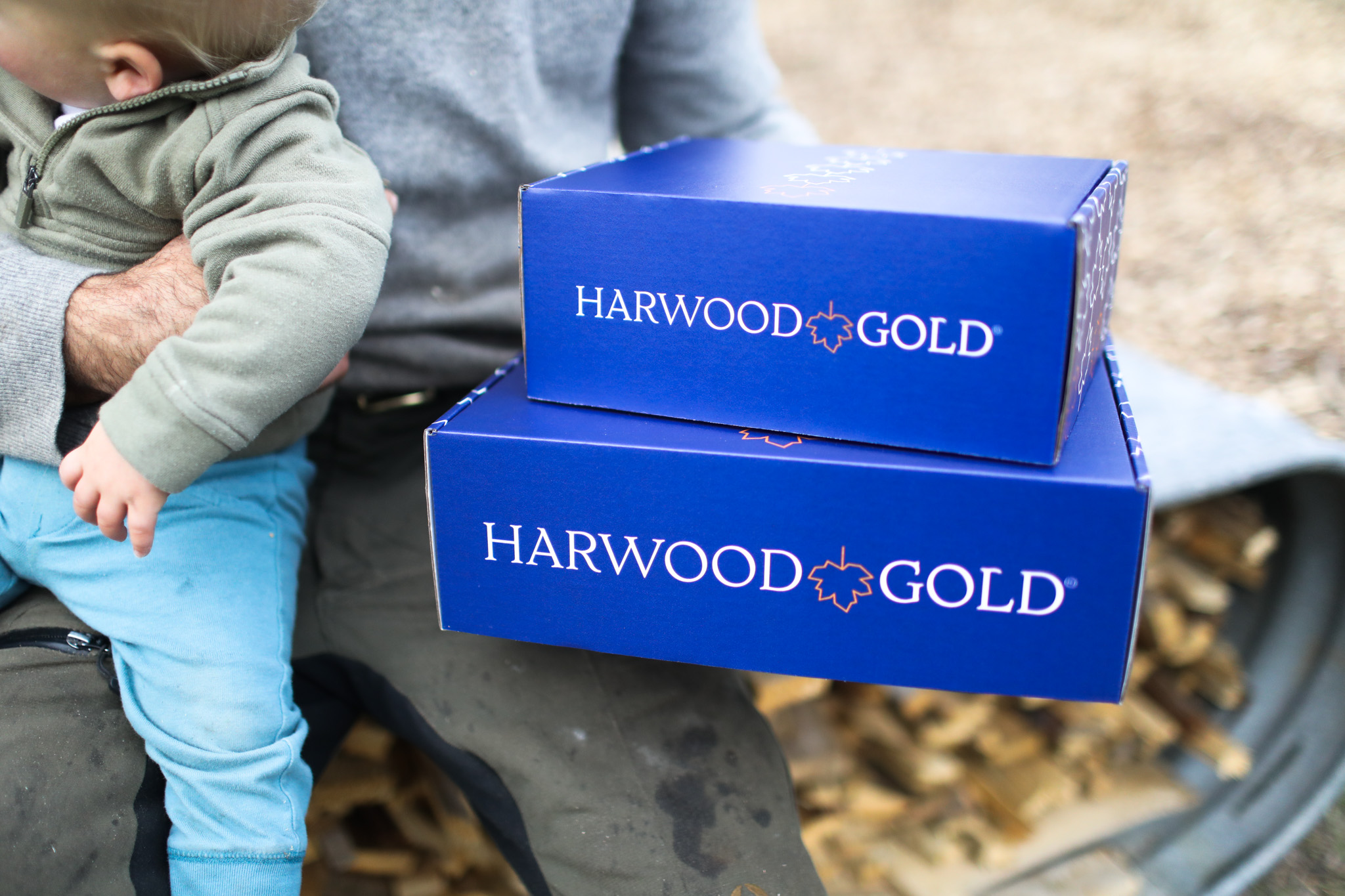 Our gift boxes arrive in the custom blue Harwood Gold shipping box shown in the photo below the main photo.