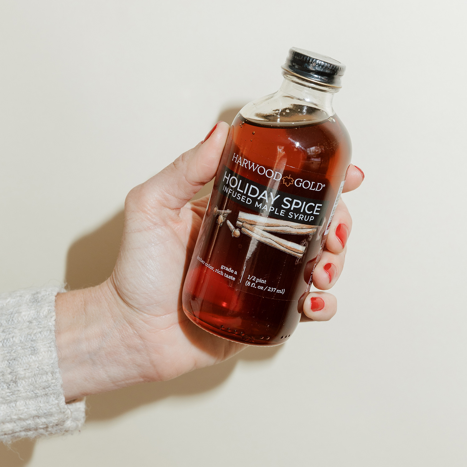 Our Holiday Spice Infusion captures all the warmth and comfort of the winter season in one delicious pour. We take our pure, Amber Rich maple syrup and infuse it with a festive blend of cinnamon, ginger, vanilla bean, and cloves – creating a syrup that tastes like a crackling fire, a cozy sweater, and a plate of freshly baked cookies all at once.